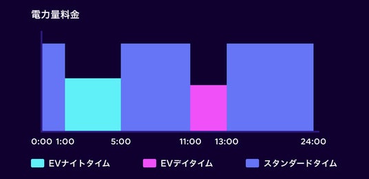「EVオクトパス」は、EVとPHEVの利用者を対象に、深夜2:00~4:00(2時間)の間はそれ以外の時間帯の料金単価の半額以下で電気を利用できるプランとして、2022年8月に東京電力エリア限定でサービスを開始しました。こうした中、ご契約者はもちろんのこと、ご契約者以外からも多くのご意見やご要望があり、このたび、沖縄県を除く全国エリアへ拡大し、安い電力単価が適用される時間を4時間(深夜1:00~5:00)に拡大するとともに、深夜帯よりもさらに安い電力単価が適用される昼間の2時間(11:00~13:00)を新たに追加しました。