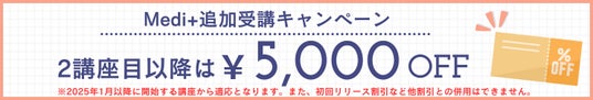 Medi+の講座を2回目受講以降、5000円割引キャンペーンがスタート