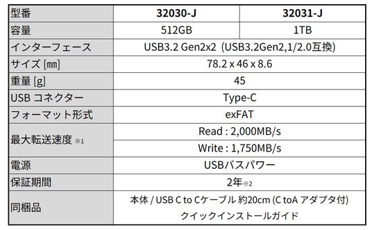 ※1 参考値です。この転送速度を保証するものではありません。※2 本製品の保証は日本国内においてのみ有効です。