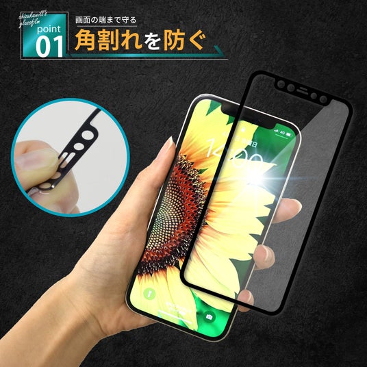 ●ガラスフィルムに黒いフチがついているため、ガラスの端が欠けにくい