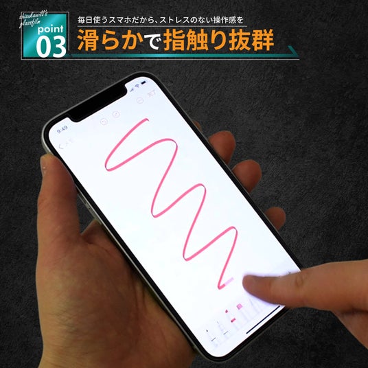 表面硬度9Hにより傷がつきにくく厚み0.3mmのガラスが大事な画面をしっかり守ってくれます
