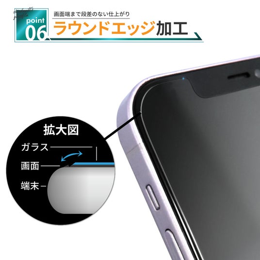 ●ガラスフィルムの縁は滑らかな曲面のため、指が引っかからず剥がれにくいい構造です。