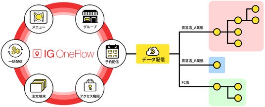IG OneFlowには、チェーン店・多店舗運営を効率化し、柔軟な管理を実現する機能が搭載されています。