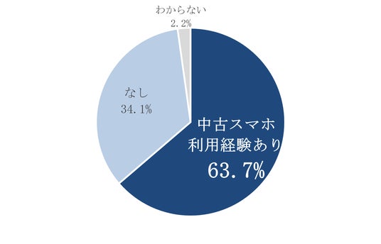 ※スマホを所持する小学1~6年生の親のうち、子どもに中古スマホを使用させたことがある(過去に自分が使用していた端末を譲ったなども含む)と回答した人が63.7%
