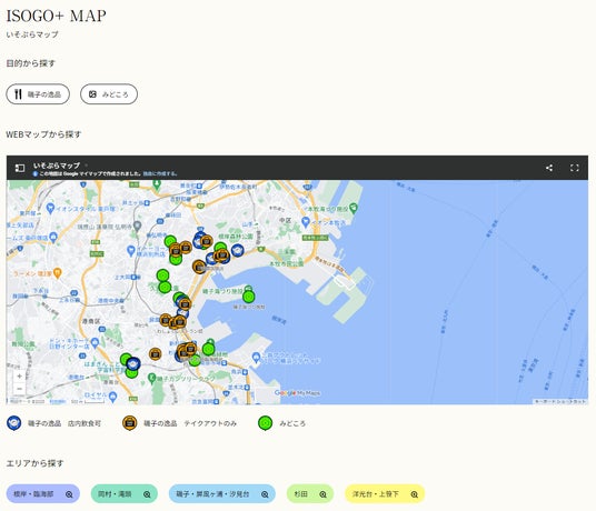 「磯子の逸品」や区内みどころスポットを、デジタルマップ(いそぷらマップ)で検索できます。