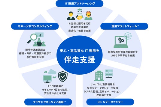 DCSが長年かけて培ってきた豊富なノウハウと実績ある運用サービスを集約した運用ブランドで、お客様の理想的なIT組織にシフトできるよう伴走型でナビゲートし、お客様の課題解決を促します。
