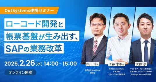 ウイングアーク1st株式会社(本社:東京都港区、代表取締役 社長執行役員CEO:田中 潤、以下ウイングアーク1st)は、ローコード開発基盤「OutSystems」のプレミアパートナーである株式会社BlueMemeが販売・サービス提供する「OutSystems」と、帳票基盤ソリューション「SVF」ならびに電子帳票プラットフォーム「invoiceAgent」が連携したことをお知らせします。