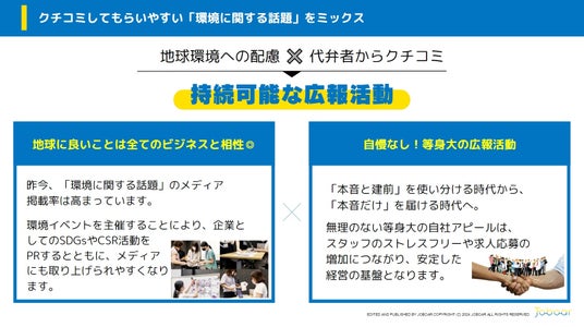 さらに「広報PLUS」では、業界初の環境イベント代行を提供しています。