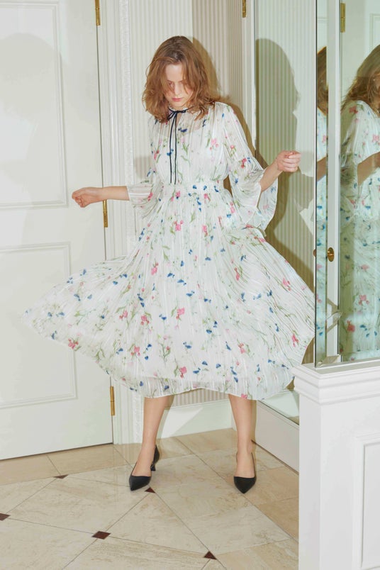 シフォンやレースなど細部に忍ばせるロマンティックディテールで