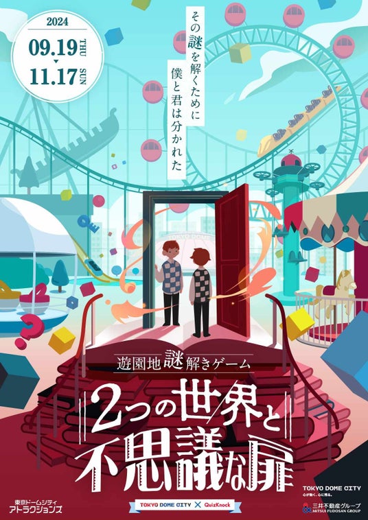 本イベントは、東大クイズ王・伊沢拓司氏が率いるQuizKnockがプロデュースする大規模謎解きイベントで、2024年9月19日(木)から11月17日(日)の60日間にわたり東京ドームシティ全域で開催されました。遊園地を舞台とした謎解きゲーム「2つの世界と不思議な扉」や、シティ全域に散りばめられた100の謎に挑む「シティ回遊謎ラリー」など、参加者が東京ドームシティの様々なスポットを巡りながら楽しむ内容となっています。