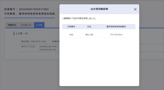 この公文書を「ジンジャー」上からダウンロードすることで、従業員データベースへ自動反映することができます。