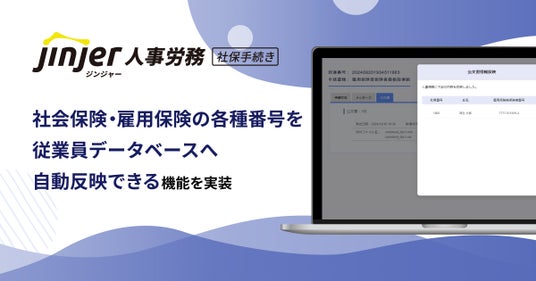 クラウド型人事労務システム「ジンジャー」を提供しているjinjer株式会社(本社:東京都新宿区、代表取締役社長:桑内 孝志)は、「ジンジャー人事労務(社保手続きオプション)」で、社会保険・雇用保険の各種番号を従業員データベースへ自動反映できる機能を実装したことをお知らせします。