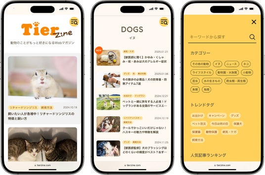 「TierZine」(https://tierzine.com/)は、全ての動物に関する情報発信メディアです。動物のかわいい面だけではなく環境問題や絶滅危惧種、動物愛護といった問題点にも触れており、専門家が監修する信ぴょう性の高い記事を発信しています。