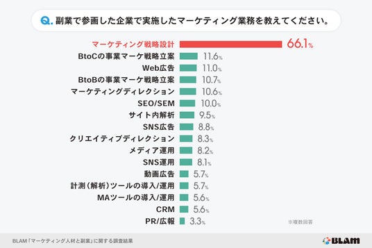 副業マーケターが実施する業務の実態『マーケティング戦略設計』が6割超