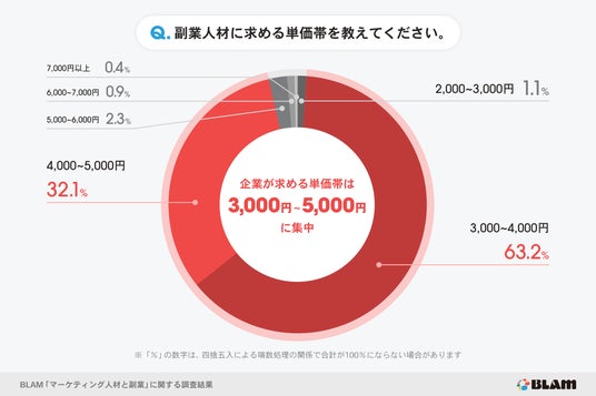 3,000~4,000円の単価帯が市場の中心となっており、企業が求めるコスト感と人材へ期待するスキルセットが合致している可能性が高いといえます。コストパフォーマンスを重視しつつ、ある程度のスキルや経験を持つ人材を確保したい企業が多いことが分かります。これは副業市場での一般的な予算感に適応した設定といえます。
