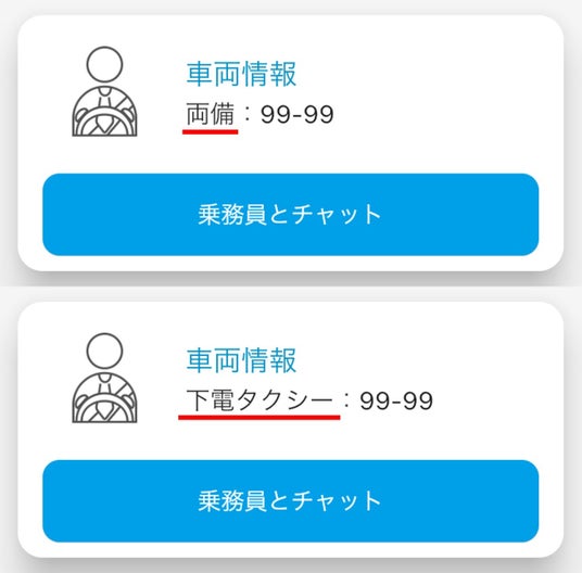 配車されたタクシー会社は配車後の車両情報から確認できます。
