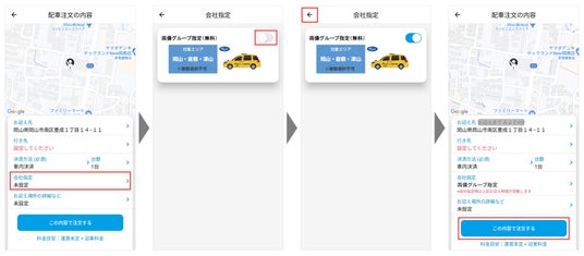 即時ご注文の場合、両備グループの配車のみ指定が可能です(アプリバージョン1.1.14以降対応)
