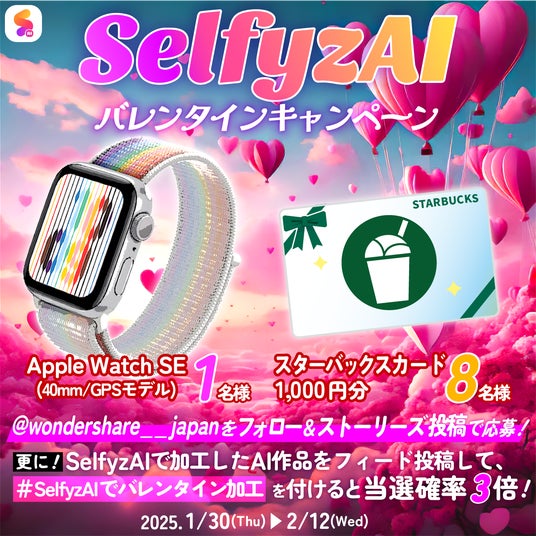 株式会社ワンダーシェアーソフトウェア(東京都港区、代表:呉太兵)のSelfyzAIの公式SNSから、バレンタインデー記念総勢9名に豪華賞品が当たる!