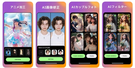 トレンドに沿った楽しい写真加工バリエーションを提供します。