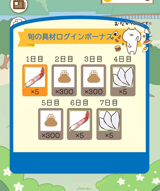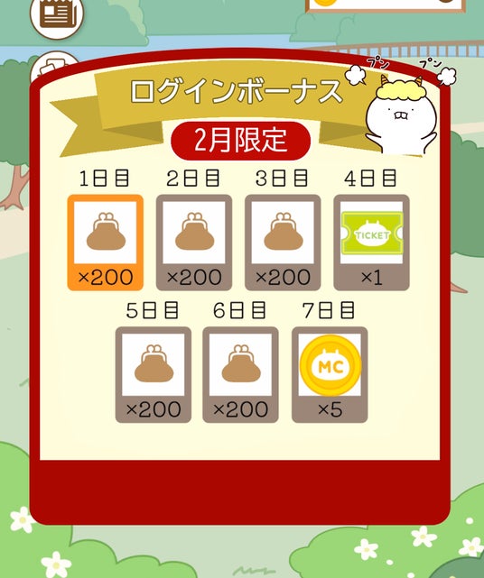 ※期間中は表示されている7日分のログインボーナス全て獲得すると1日目から再度獲得可能となります