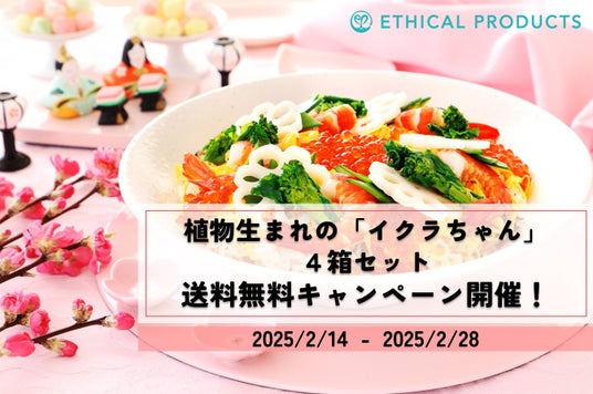 エシカルプロダクツ株式会社(所在地:熊本県水俣市 / 代表取締役:永井 香織)は、2025年2月14日(金)から2025年2月28日(金)まで、動物性原料不使用の「植物生まれのイクラちゃん 4個セット」が送料無料となるキャンペーンを自社オンラインショップにて開催いたします。