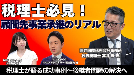株式会社ストライク(東京都千代田区、代表取締役社長:荒井邦彦)は、2025年1月30日(木)、運営するM&A情報専門ウェブメディア「M&A Online」にて、高井国際税務会計事務所とのM&A連携事例に関する新たな動画コンテンツを公開いたしました。