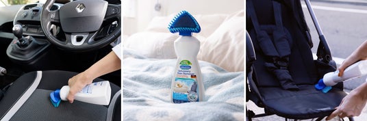 Dr. Beckmannで世界的に大人気のカーペット ステインリムーバーよりも少し柔らかめの三角ブラシが特長のソファ&カーシート ステインリムーバー。