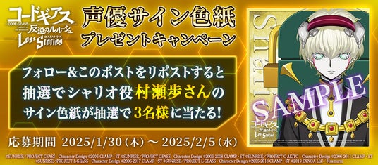 期間中にロススト公式Xをフォローし、対象のポストをリポストすると、 櫻井孝宏さん、村瀬歩さんのサイン入り色紙が抽選で3名様に当たります。是非ふるってご参加ください!