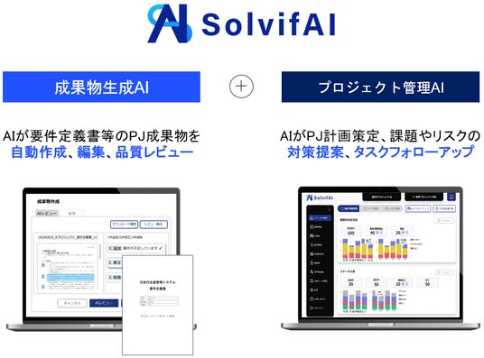 SolvifAI(ソルビファイ)は、生成AIにより要件定義書等の成果物を自動作成でき、要件考慮漏れ防止や業務負荷の大幅な軽減を実現し、プロジェクト成功率の向上に貢献します。