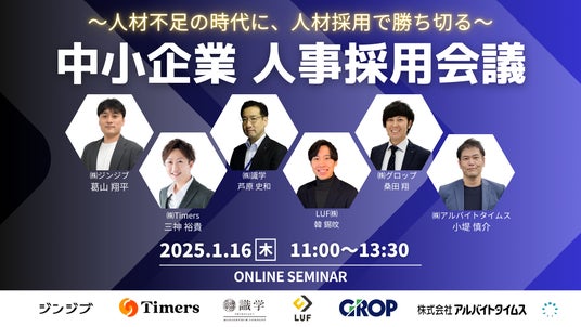 この度、株式会社アルバイトタイムス様、株式会社ジンジブ、株式会社Timers、株式会社識学、株式会社グロップと、「中小企業における採用活動」をテーマに共催ウェビナーを開催いたしました。