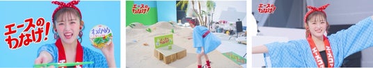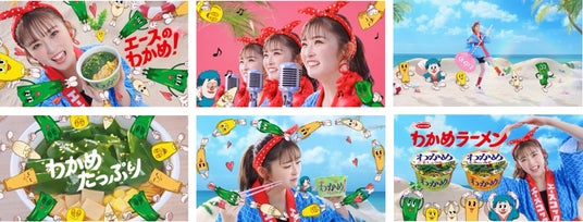 「エースのわかめ!」と、元気いっぱいにハッピ姿のゆうちゃみさんが登場。往年のCMでお馴染みの「わ~かめ好き好きピチピチ~♪」の音楽に合わせて巨大うちわを元気に扇ぎながら、「ピチピチ~♪」「イキイキ~♪」と歌声を披露します。さらにわかめラーメンオリジナルキャラクター「わかめくん」「コーンくん」「メンマさん」「ごまさん」に加え、みんなを束ねる「団長」が登場し、ゆうちゃみさんと一緒にロカビリー風ダンスを披露します。ゆうちゃみさんがわかめラーメンをすすると、そのおいしさに、名セリフ「お前はどこのわかめじゃ?」を愛嬌たっぷりに披露。最後には「わかめ!」と決めポーズ。ゆうちゃみさんのハッピーなキャラクターを活かした令和版わかめラーメンCMぜひご覧ください。