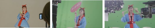 レジェンド級の先輩方が出演されていた「わかめラーメン」CMの3代目に選ばれ、どこか緊張した様子を見せながらも、いつものゆうちゃみさんらしく「お願いします!」と元気にスタジオに登場。ご自身が大好きだという「海」のセットを目の前にテンションが上がり、セットの砂浜や貝に興味津々の様子でお茶目な姿も見せてくれました。軽快な音楽に合わせ、巨大うちわを扇いだり、うちわを持ちながら踊ったりと様々なポーズを次々と決めていきます。「ピチピチ~♪」「イキイキ~♪[誉林1] 」と歌う場面では、わずか数回のテイクで監督からOKが出されるなど、歌手としてのゆうちゃみさんの一面も。「おまえはどこのわかめじゃ?」のセリフ撮りの際には、ゆうちゃみさんならではのリズム感やニュアンスを出そうと試行錯誤している様子も見られました。最後のカットの撮影を終えると「いえーい!」とエースコック担当者とハイタッチをかわし撮影が終了。ゆうちゃみさんの明るく元気なキャラクターで終始現場を盛り上げていただきました。
