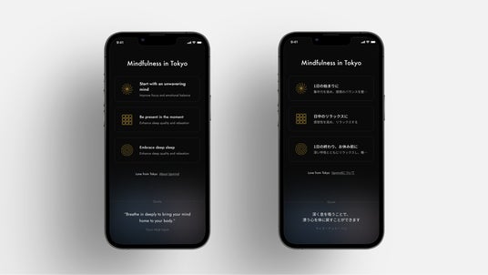 累計100万ダウンロードを達成しているマインドフルネスアプリ「Upmind」を開発・提供してきた弊社の知見を元に、グランド ハイアット 東京のために特別に制作しました。