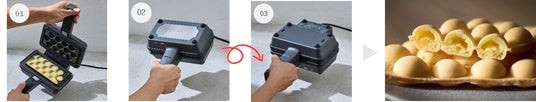 - POINT 01 “ひっくり返して”焼くことで、本格的なエッグワッフルに