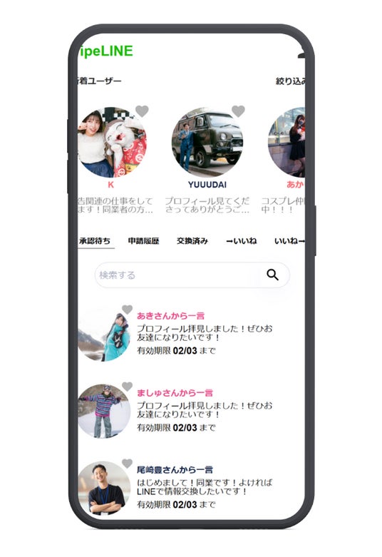 誰からLINE交換の申請が届いたか一目瞭然、気になる人のプロフィールを覗いて友達になりたいと思ったら承認しよう!