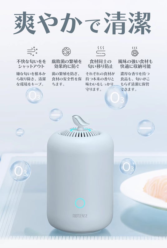 冷蔵庫用の高性能消臭器「ZEN」は、冷蔵庫に置くだけの簡単設計。