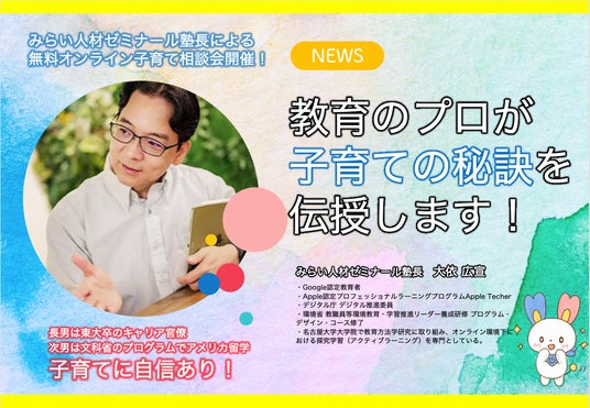 みらい人材ゼミナール合同会社(本社:愛知県北名古屋市/代表:大依広宣)は、教育のプロフェッショナルによる子育て相談会をオンラインで開催します。