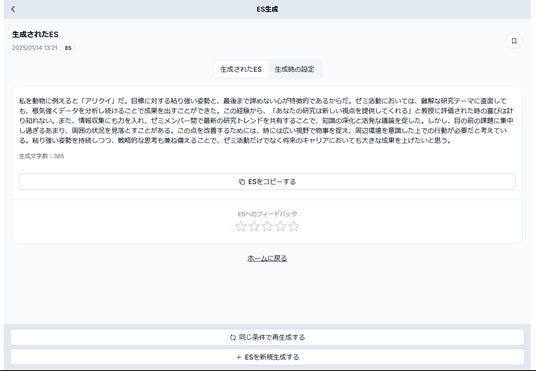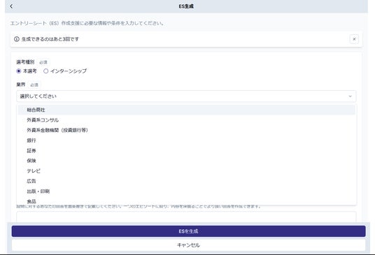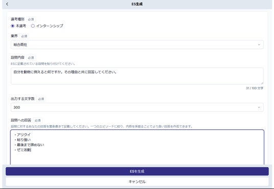 ES生成:志望動機やガクチカの文章をAIが自動生成