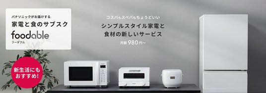 「シンプルスタイルシリーズ」は、「より安く、長く使えるものが欲しい」というZ世代のコスパ需要に応えるとともに、国内で年々増加傾向にある単身世帯(※2)を対象にしたコースです。一人暮らしを始める際に揃えることが多いキッチン家電として、炊飯器、単機能レンジ、冷蔵庫、オーブントースターを提供し、選択した組み合わせに応じて月額980円から3,480円で展開します。加えて、厳選した食材を販売するECサイト「foodableマルシェ」で使えるマルシェポイントを毎月付与。健康的な食生活をサポートします。