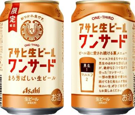 「マルエフ」と「黒生」を2:1で混ぜた「ワンサード」を中四国エリアで2月18日から数量限定発売します。「ワンサード」は「出張マルエフ横丁」で人気の飲み方です。「マルエフ」のまろやかさと「黒生」のほのかな芳ばしさが混ざり合った味わいが楽しめます。全国に先駆けて発売した九州エリアでは「マルエフの飲みやすさと黒生のコクが相性がいい」「いままでイベントでしか飲めなかったワンサードが缶ビールになって嬉しい」といった声が上がるなど、好評です。
