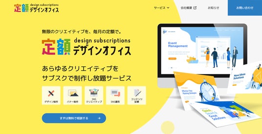 定額デザインオフィスは、バナー制作や資料作成、SNS運用コンテンツの制作、記事作成など、企業のクリエイティブニーズを包括的にサポートする定額制サービスです。