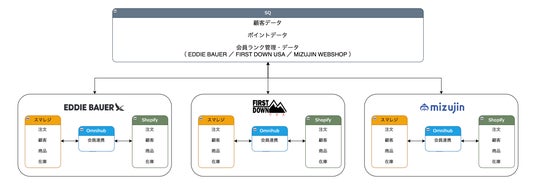 本導入により、MIZUJIN WEBSHOP、Eddie Bauer、FIRST DOWN USAの3つのブランドを横断した顧客のポイントおよびランクの一元管理が実現しました。特筆すべきは、この統合的なロイヤリティプログラムがランニングコストをほとんど増加させることなく実現された点です。