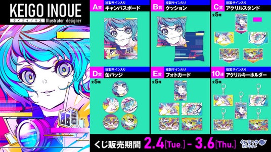 イラストレーター・デザイナー・映像クリエイター『ケイゴイノウエ/KEIGO INOUE』が「くじラックオンライン」に登場!新規描き下ろしなどの豪華オリジナルグッズがハズレなしでゲットできる!2025年2月4日(火)より発売開始!