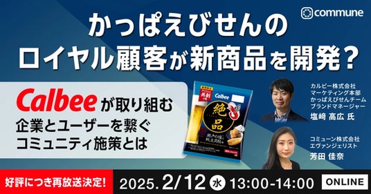 コミュニティサクセスプラットフォーム「Commune(コミューン)」を提供するコミューン株式会社(本社:東京都品川区、以下コミューン)は、カルビー株式会社(本社:東京都千代田区、以下カルビー)がCommuneを活用し展開する、絶品かっぱえびせんを語るファンコミュニティ「絶品部『やめられない、とまらない課』」にて、お客様の声から出来上がった新商品の開発第2弾が発表されたことをお知らせします。