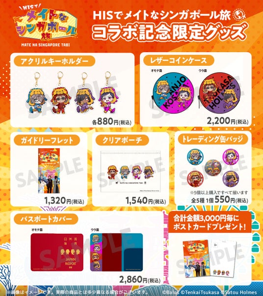 MonsterZ MATE、天開司、佐藤ホームズが一緒にシンガポールを旅する様子を収めた特別Vlogの公開にあわせて、SNSキャンペーンを実施するとともに、手描きメッセージやAR機能を使ったデジタルコンテンツが含まれるガイドリーフレット、マーライオン仕様の描き下ろしイラストによる旅行用品を含むコラボ記念限定グッズをご用意します。