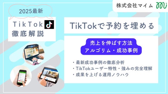 株式会社マイム(本社:東京都品川区、代表取締役社長:古川 湧一、以下「当社」)は、実店舗の皆様を対象にTikTokトレンドレポート「TikTokで予約を埋める」を公開いたしました。本レポートは、TikTokを活用した最先端のプロモーション事例や成功パターン、そして結果に直結する戦略的な運用ノウハウを一冊に集約。