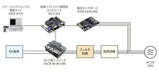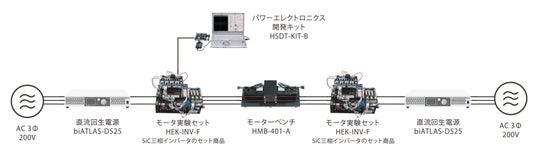 本製品は開発用コントローラボード「HECS-B/A」やソフトウェア開発キット「HSDT-KIT-B」など、他のbiRAPID製品と組み合わせて利用可能です。これにより、制御方法を自由に開発することができ、モータドライブ、系統連系、コンプレッサ制御など、多岐にわたる分野で活用できます。また、これらbiRAPID製品を組み合わせたセット商品(『インバータ実験キット』、『モータ実験セット』)を活用することで、実験環境を即座に構築することも可能です。