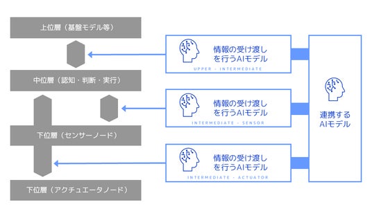 AMATAMAが本研究開発を行う階層型コンピューティング(ハイアラーキカル・アーキテクチャ)では下位、中位、上位などの階層ごとに役割を与えられたコンピュータがそれぞれ情報のやり取りを行う必要があります。そしてそれらの情報は、さらに上位のコンピュータにて実行されている基盤モデルのAIが解釈可能な形で受け渡しをする必要があります。今回、fuku が持つ高度な生成AIアルゴリズムとその構築・設計に関わる技術支援を受け、この各層のコンピュータが各々にAIを用いて基盤モデルのAIとの情報の受け渡しが可能となるよう研究開発を行います。これにより、ヒューマノイドの身体内の複数の制御コンピュータ群がAIを用いて連携し、人間の神経系と同様の機能を実行できるようになります。