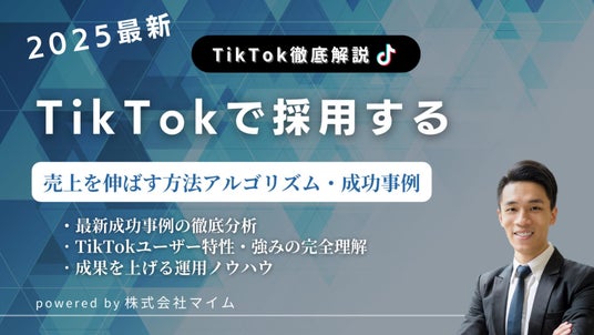 株式会社マイム(本社:東京都品川区、代表取締役社長:古川 湧一、以下「当社」)は、人事担当者の皆様を対象にTikTokトレンドレポート「TikTokで採用する」を公開いたしました。本レポートは、TikTokを活用した最先端のプロモーション事例や成功パターン、そして結果に直結する戦略的な運用ノウハウを一冊に集約。