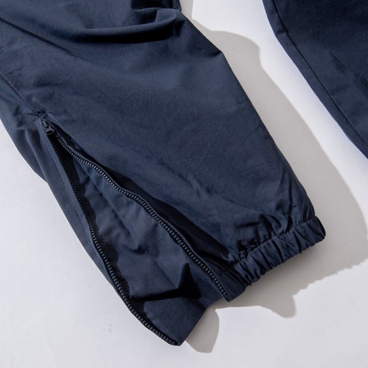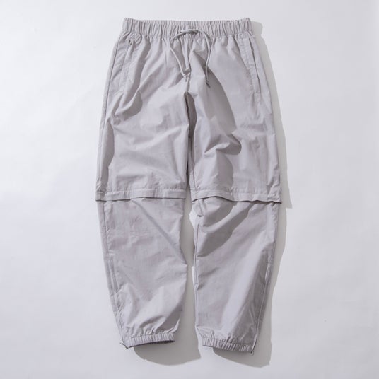 同素材のパンツは、ひざ下部分が取り外せるジップオフ仕様で、ロングパンツとしてもショーツとしても着用可能。裾にはジッパーを施し、靴に合わせてシルエットを調整できます。各ポケットにはジップを内蔵し、収納物を安全に保管できるのもポイントです。ジャケットとのセットアップで、統一感のあるあるスタイリングが楽しめます。